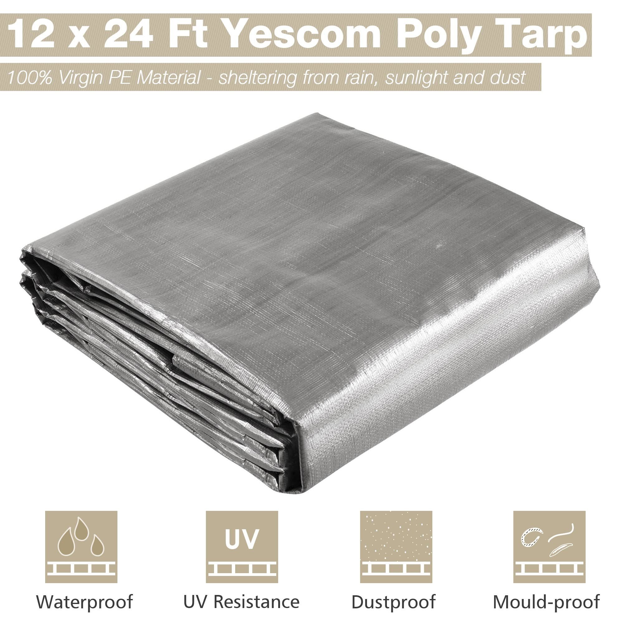- Strong & Durable Shelter - 12 x 24 ft silver and black poly tarp forms a strong and durable shelter from sunlight; rain and dust; cooler underneath in the summer; Long lifetime up to 3 years; it features good ability of anti-aging for long-time use